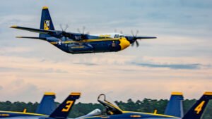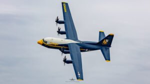 Fat Albert – The Power Behind the Blue Angels. Get ready for an exhilarating experience as Fat Albert, the U.S. Navy Blue Angels’ legendary support aircraft, takes to the skies! This powerhouse, a Lockheed C-130J Super Hercules, delivers an electrifying pre-show that sets the stage for the breathtaking precision of the Blue Angels’ main performance.