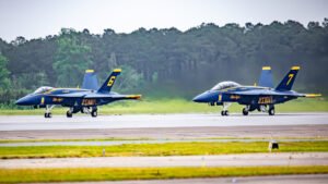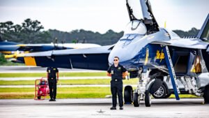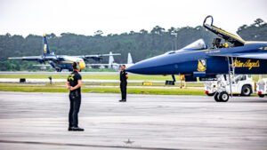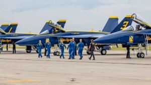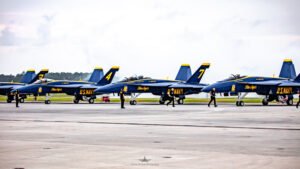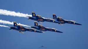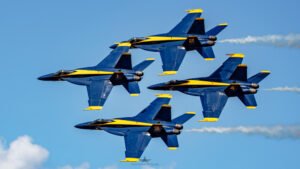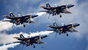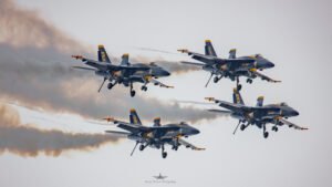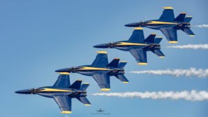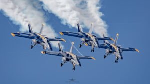 When the F/A-18 Super Hornets roar overhead and execute their signature formations with split-second timing, it’s not just a show—it’s a testament to human skill and technological mastery. The coordination between pilots and support teams creates an experience that is as thrilling as it is awe-inspiring. From the thunderous sound of the engines to the elegance of their synchronized movements, the Blue Angels deliver a performance that keeps you on the edge of your seat and leaves you with a lasting sense of wonder.