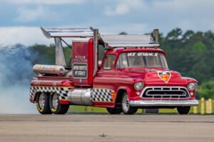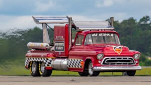 Introducing the Hot Streak II – The Ultimate Powerhouse on Wheels. Prepare to witness raw speed and jaw-dropping power! The Hot Streak II is no ordinary pickup—it’s a 1957 Chevy transformed into the world’s fastest truck. Equipped with a mind-blowing 25,000-horsepower twin jet engine, this beast can rocket past 350 miles per hour, redefining what it means to push the limits of performance.