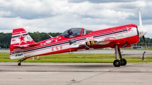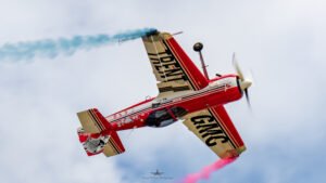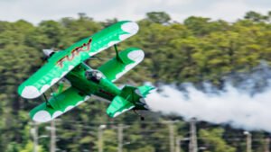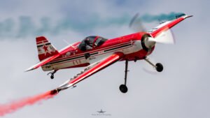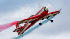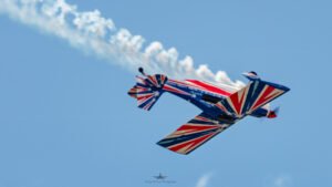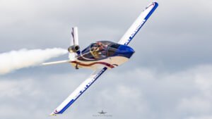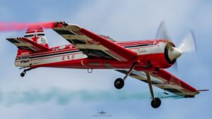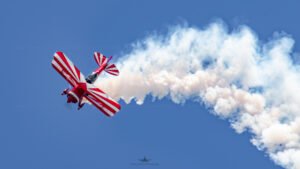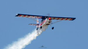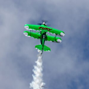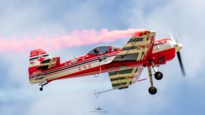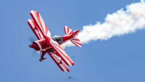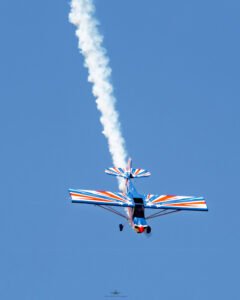 Prepare to be amazed as RJ Gritter takes to the skies in the striking red, white, and blue Decathlon. Known as one of the most iconic aerobatic trainers, this aircraft becomes a canvas for RJ’s breathtaking artistry in the air. From graceful loops to daring spins and precision rolls, every maneuver is performed right in front of the crowd, delivering a thrilling spectacle you won’t want to miss.
