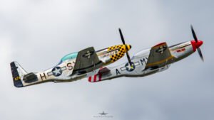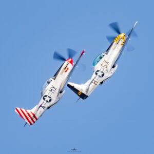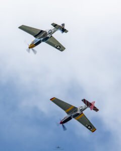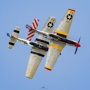 Get Ready for an Unforgettable Airshow Experience. Prepare to be amazed as Jack Aces takes to the skies with two legendary P-51 Mustangs—“Mad Max” and “The Little Witch.” These iconic warbirds will showcase their power and grace in a breathtaking aerial display featuring loops, aileron rolls, and barrel rolls, all executed in tight formation. Every maneuver is a testament to precision flying and the enduring legacy of these historic aircraft.