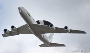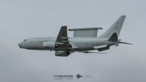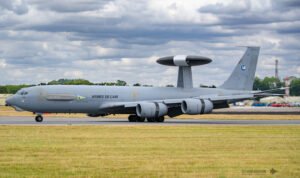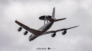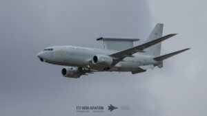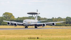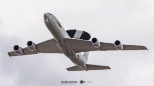 The French Air Force E‑3 Sentry impressed with its rare flying appearance, highlighting airborne early warning capability. Its size and distinctive radar dome made it a unique addition to the static display.