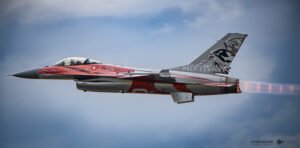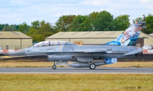 The finale belonged to Denmark’s Captain Troels “TEO” Vang, whose F‑16AM Fighting Falcon routine marked the end of an era for the Danish solo display. His graceful yet powerful performance, enhanced by the striking “Dannebrog II” livery, closed RIAT 2025 with a water‑salute tribute and earned the Sir Douglas Bader Trophy. It was a fitting conclusion to a program that celebrated heritage, showcased innovation, and reaffirmed RIAT’s standing as the world’s premier stage for military aviation.