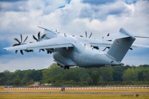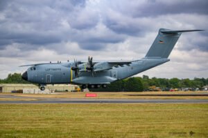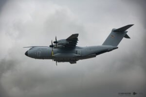 The Luftwaffe Airbus A400M impressed with a dynamic routine that highlighted its maneuverability through sharp turns, steep ascents, and short-field operations. Taken from LTG62 at Wunstorf, this full display included demonstrations of operational modes, such as ramp use and low-speed segments. On Saturday, attention was drawn when applying the brakes in a runway reverse made the nose pitch noticeably upward. The show featured striking photo opportunities with banking passes, propeller blur during low approaches, and dramatic sequences involving the rear ramp.