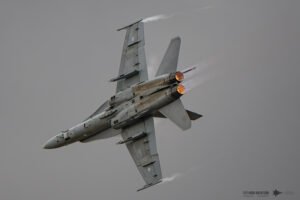 The Finnish F‑18 impressed with sharp turns, rapid climbs, and thunderous passes. Flying multiple demos each day, F-18 Hornet produced striking wing vapor in the moist conditions, a real treat for photographers, awesome to see the F-18 Legacy still performs so well.