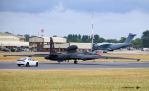 The USAF U‑2S from RAF Fairford’s 99th Expeditionary Reconnaissance Squadron gave a rare demonstration in Europe, fully equipped with the Senior Span spine pod and a sensor-fitted nose. In keeping with the ‘Eyes in the Skies’ theme, the display included much more than standard fly-bys: there was a performance take-off, a wheels-up pass, and a simulated flame-out landing followed by a go-around. With its long wings and sleek design, the aircraft provided excellent opportunities for photography, especially during the wheels up pass and the final approach.