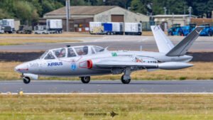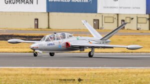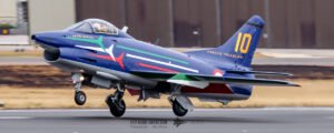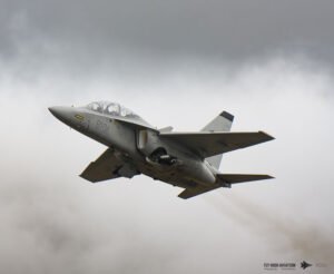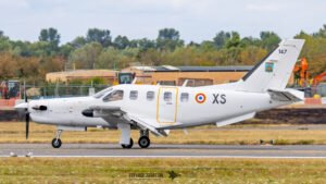 The French Army TBM700 demonstrated light transport versatility with a smooth routine and crisp handling. Compact yet capable, it offered a glimpse into the efficiency of modern utility aircraft. Seen arriving to take it’s place on the static display.