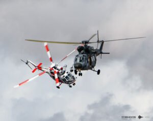 The Czech Air Force’s PZL‑Świdnik W‑3A Sokóls usually appear in solo search‑and‑rescue roles, but at RIAT they surprised the crowd with a two‑ship routine. The pair blended a combat search‑and‑rescue scenario with tightly choreographed, ballet‑like maneuvers, all set to the distinctive whine of their turboshafts. The inventive display earned the crew the RAFCTE Trophy for Best Flying Demonstration by an Overseas Participant.