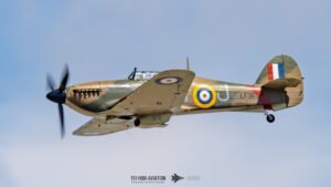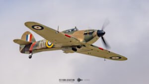 The Spitfire and Hurricane took to the skies, flying a graceful routine, honoring their heritage with elegance and care. Their gentle maneuvers highlighted not only the elegance of their design but also the respect shown by the pilots in preserving such treasured aircraft.