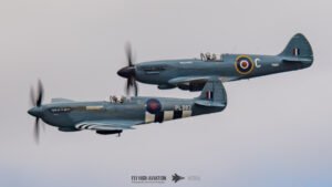 Rolls‑Royce contributed to the theme with a pairing of its Spitfire PRXIX, flown by Jim Schofield, and the Aircraft Restoration Company’s PRXI, piloted by Lars Ness. The duo flew in close formation, offering a graceful tribute to the enduring legacy of the Spitfire.