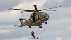 A highlight was the Portuguese Air Force Merlin Mk514 from Esquadra 751, delivering an impressive Search and Rescue display. Returning to UK skies after many years, the crew showcased the helicopter’s capability with precision, its striking camouflage adding to the spectacle, a photographer’s dream.