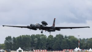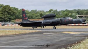 International partners added depth and color to the program. Rotary displays from the Czech Air Force, German Army, Swedish Air Force, and Portugal’s Merlin Mk514 brought variety and flair, while fixed‑wing contributions ranged from France’s charismatic Atlantique ATL2 to the United States Air Force’s extraordinary full demonstration of the U‑2S reconnaissance aircraft. National teams such as Italy’s Frecce Tricolori, the Royal Jordanian Falcons, and Slovenia’s PC‑9M Hudournik reinforced RIAT’s global character, each display combining skill with cultural identity.