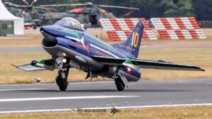 The flying program featured the Leonardo T‑346A Master alongside the Catellani Group’s beautifully restored Fiat G‑91R/1A, wearing the Fecci Tri Colri team colors. The G‑91’s meticulous restoration first emerged in 2023 for the Italian Air Force centenary at Pratica di Mare; RIAT marked its first airshow outing outside Italy and gave many spectators their first chance to see the type perform a short solo display.