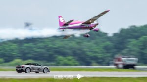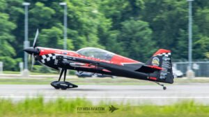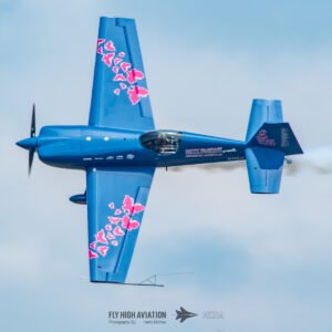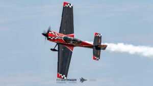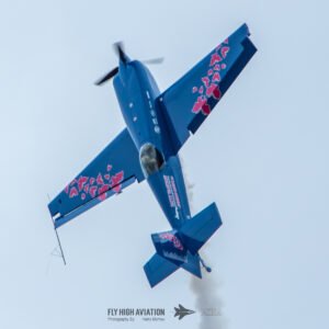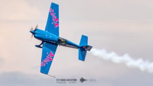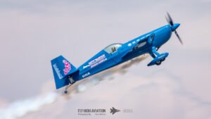 Patty Wagstaff returned to the sky for her second routine with the same confidence and precision that defined her opening act, but this time with even more intensity. Her Extra 300 carved crisp, deliberate lines through the air as she shifted into a tighter, more technical sequence—snap rolls, vertical uplines, and smooth transitions that showed just how much mastery she brings to every performance. The crowd responded immediately; even after a full afternoon of flying, her ability to command attention was unmistakable. This second display felt like a signature Patty moment: polished, powerful, and full of personality.