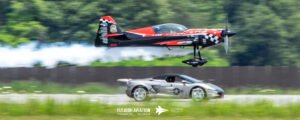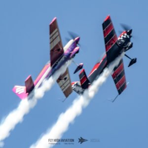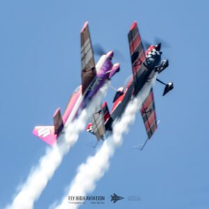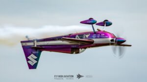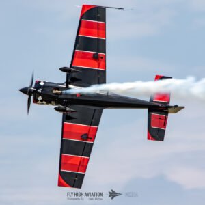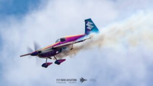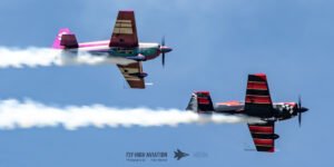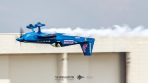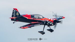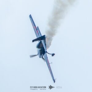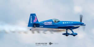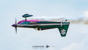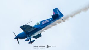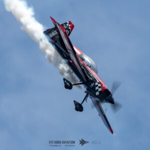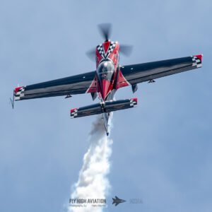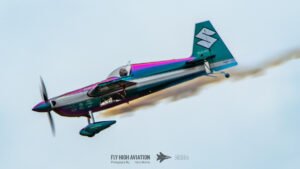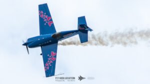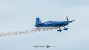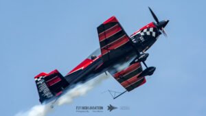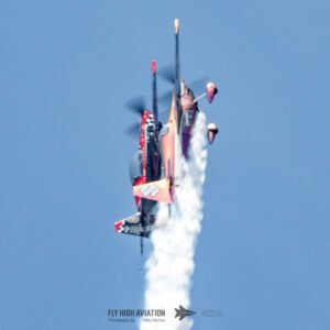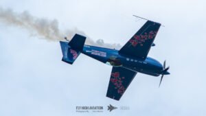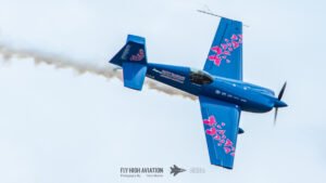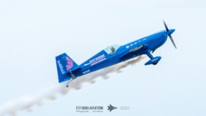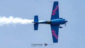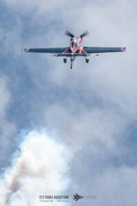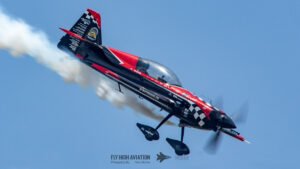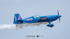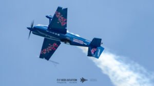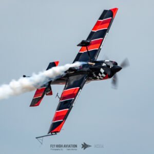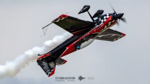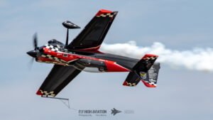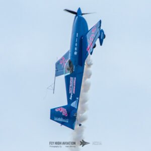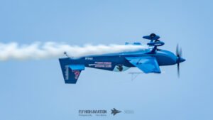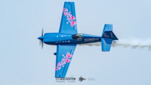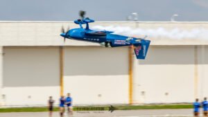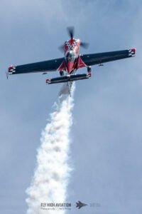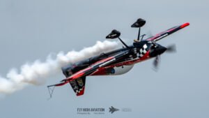 Rob Holland followed with a burst of pure intensity, launching into a high‑energy solo routine that immediately pushed the pace of the show forward. Flying his MXS‑R with trademark precision, he blended rapid rolls, knife‑edge passes, and gravity‑defying tumbles into a routine that kept the crowd locked in from start to finish. His control and timing made even the most extreme maneuvers look deliberate and effortless, reinforcing why he’s considered one of the top aerobatic pilots in the world.