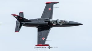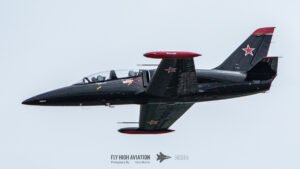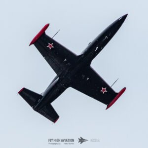 The Aero L‑39C Albatros brought a sharp change of tone to the program, its sleek lines and Russian markings giving it a distinctive presence in the sky. The jet’s fast, clean passes and tight maneuvers showed off the agility that made the L‑39 a popular trainer across Eastern Europe, and its appearance added a welcome touch of Cold War flavor to the flying lineup. It was a compact but eye‑catching display that stood out well among the afternoon’s performances.