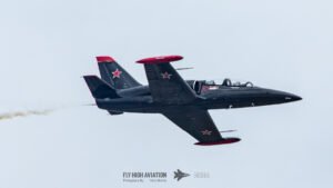 The Warrior Flight Team’s L‑39 segment shifted tone the moment they taxied out, but the “fight is on” energy took an unexpected turn when one of the jets developed an early technical issue. Instead of the planned duo routine, the team adapted quickly and delivered a tight, focused single‑ship performance. The lone L‑39 made the most of its time in the sky, running sharp passes and clean maneuvers that still captured the spirit of the act. Even as a solo display, it kept the crowd engaged and maintained the fast‑paced momentum of the show.