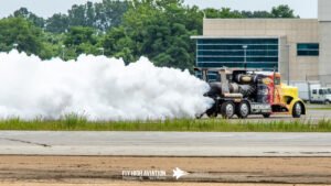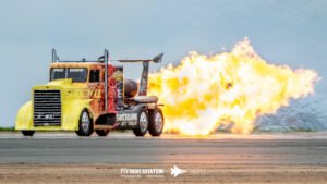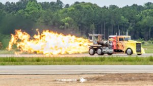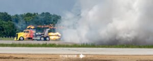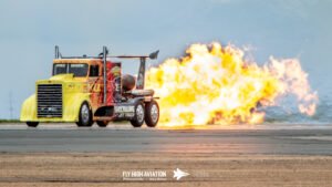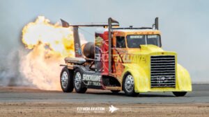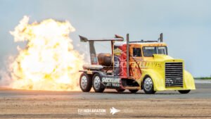 Shockwave instantly shifted the crowd’s attention the moment it rolled into position. The jet‑powered truck delivered its trademark wall of noise and raw speed, blasting down the runway with flames pouring from the afterburners and a thunderous roar that you could feel in your chest. Even after a full afternoon of flying, Shockwave’s combination of fire, acceleration, and sheer spectacle stood out as one of the most crowd‑stopping moments of the show. It’s the kind of act that doesn’t just get noticed—it demands it.