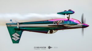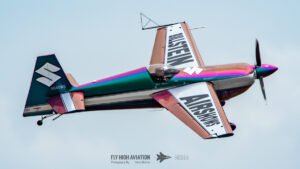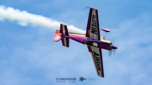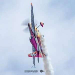 Bill Stein took to the sky in his Edge 540, instantly recognizable thanks to its ever‑changing, light‑shifting color‑shift paint scheme. As sunlight hit the aircraft, the colors transitioned fluidly across the fuselage and wings, turning every maneuver into a moving piece of art. His routine combined razor‑sharp aerobatics with smooth, flowing lines, making full use of the Edge 540’s agility and power. The result was a performance that was both technically impressive and visually striking, standing out as one of the most vibrant displays of the afternoon.