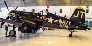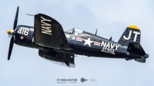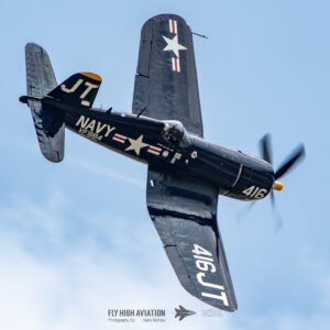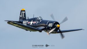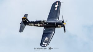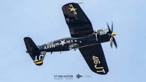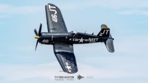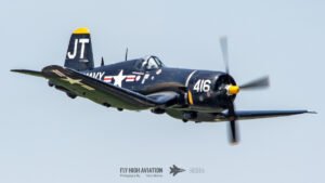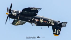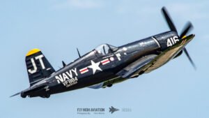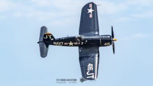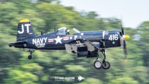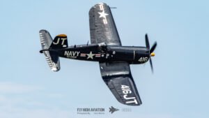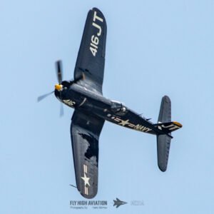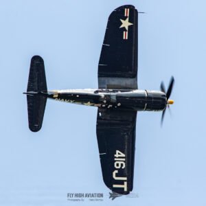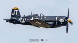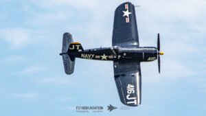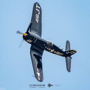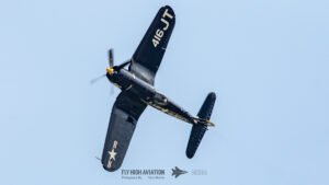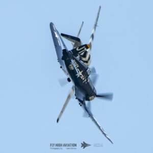 Jim “Torque” Tobul brought a deep, resonant slice of history to the field with his F‑4U Corsair, and the moment he advanced the throttle the sound alone turned heads. The Corsair’s big radial engine delivered that unmistakable, chest‑thumping roar—one of the most iconic sounds in all of warbird aviation. Tobul’s solo routine showcased the aircraft’s power and grace, with wide, arcing passes that highlighted its distinctive gull‑wing silhouette and tighter maneuvers that demonstrated just how capable the Corsair remains in skilled hands. It was a stirring, beautifully flown tribute to a legendary aircraft, made all the more memorable by that unforgettable sound rolling across the show grounds.
