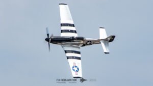 Scott “Scooter” Yoak delivered a polished and powerful warbird moment with his P‑51 Mustang Quicksilver, putting the aircraft through an impressive solo routine that highlighted both its heritage and its performance. His display blended smooth, sweeping passes with tighter, more aggressive maneuvers, letting the Mustang’s unmistakable sound roll across the field. The aircraft’s polished finish and tribute markings made every pass visually striking, while Yoak’s precise flying showcased why Quicksilver remains one of the most admired Mustangs on the airshow circuit. It was a fitting salute to the aircraft’s legacy and a standout segment of the afternoon.