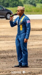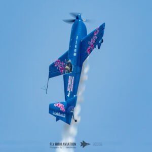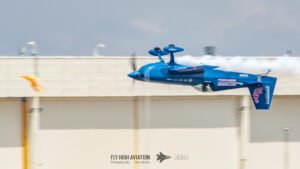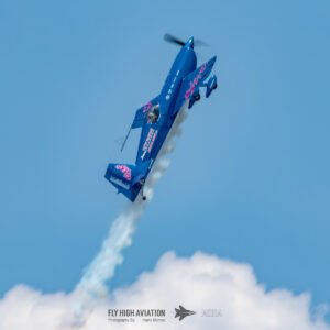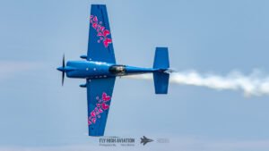 Patty Wagstaff opened the flying program with the first of two high‑energy displays, taking to the sky in her blue Extra 300 and immediately commanding the crowd’s attention. Her routine blended precision, power, and unmistakable confidence, delivering a performance that set the tone for the afternoon and brought a strong dose of girl power to the start of the show. Her sharp climbs, tight rolls, and crisp transitions made it clear why she remains one of the most respected aerobatic pilots in the world, and her opening display proved to be a perfect kickoff to the action in the air.