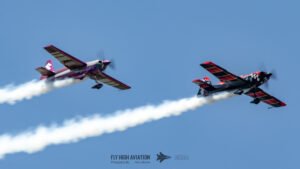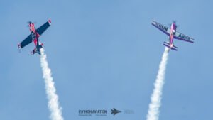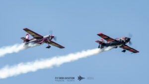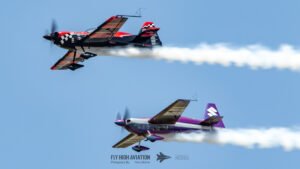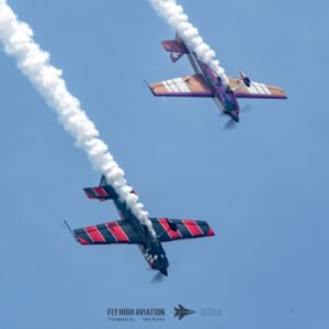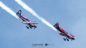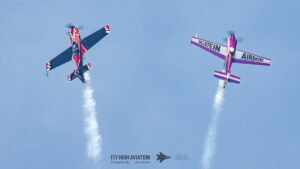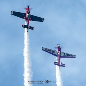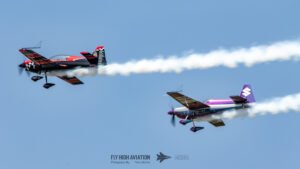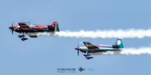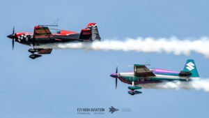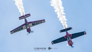 Rob Holland and Bill Stein returned to the sky together with their duo routine “Seeing Double,” a performance that blended precision flying with the kind of tight, mirrored choreography only two seasoned aerobatic masters can pull off. Their contrasting aircraft and flying styles created a dynamic visual rhythm, with synchronized rolls, opposing passes, and formation elements that felt both playful and razor‑sharp. The routine showcased not just individual skill but a deep trust between the two pilots, turning the sky into a perfectly timed dance of color, motion, and energy.