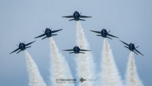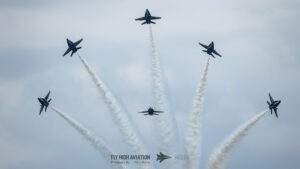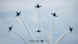 When all six jets rejoined, the Delta formation filled the sky with broad, sweeping patterns that showed off the team’s discipline and timing. Their final break and landing sequence wrapped the performance with the same precision that defined the entire display, leaving the field buzzing with the unmistakable energy of a Blue Angels home‑base show.